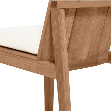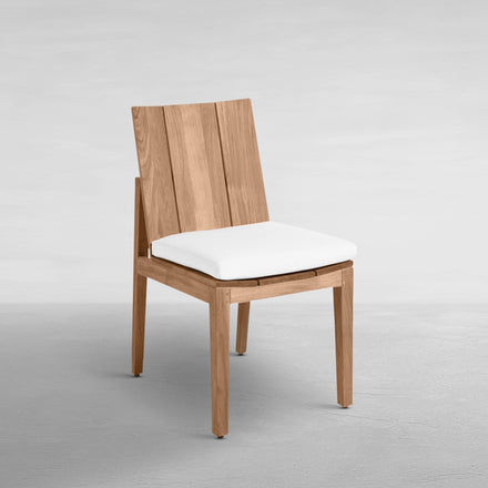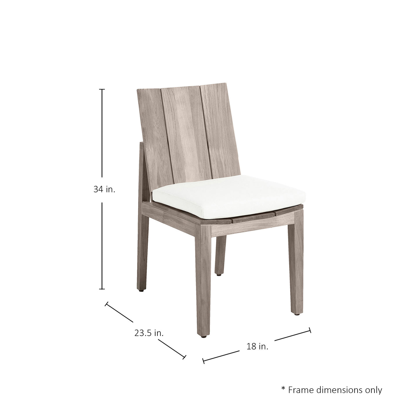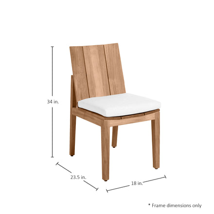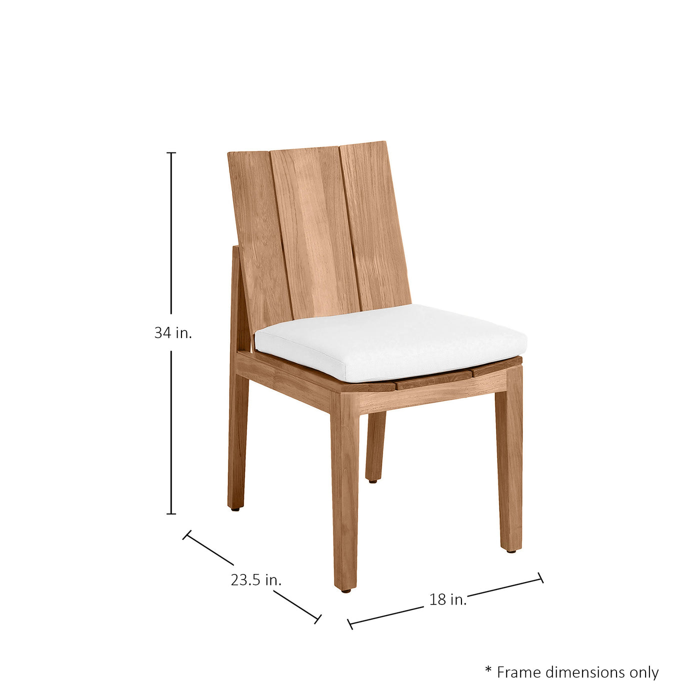 The Ashland Teak Side Chair with cushion defines contemporary outdoor dining. This versatile chair is perfect for small spaces and pairs well with a variety of other collections. Handcrafted from farm-grown, marine-grade teak, this chair is ideal as a dining chair or simply for additional stylish seating. Mortise-and-tenon construction ensures that this chair is built to last. This item is designed to be enjoyed either with or without a cushion. Please designate your choice in the below "Select a Cushion" dropdown.