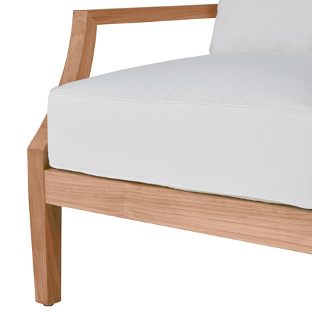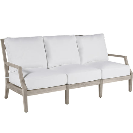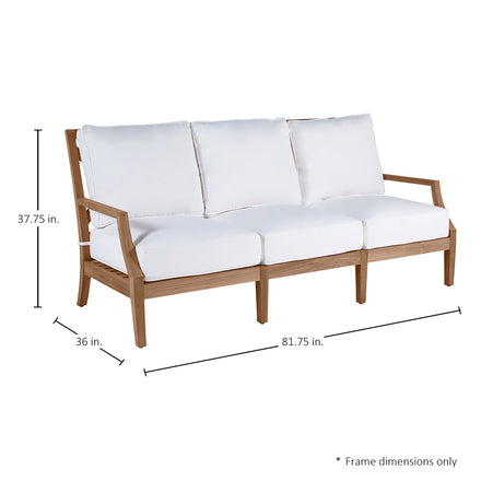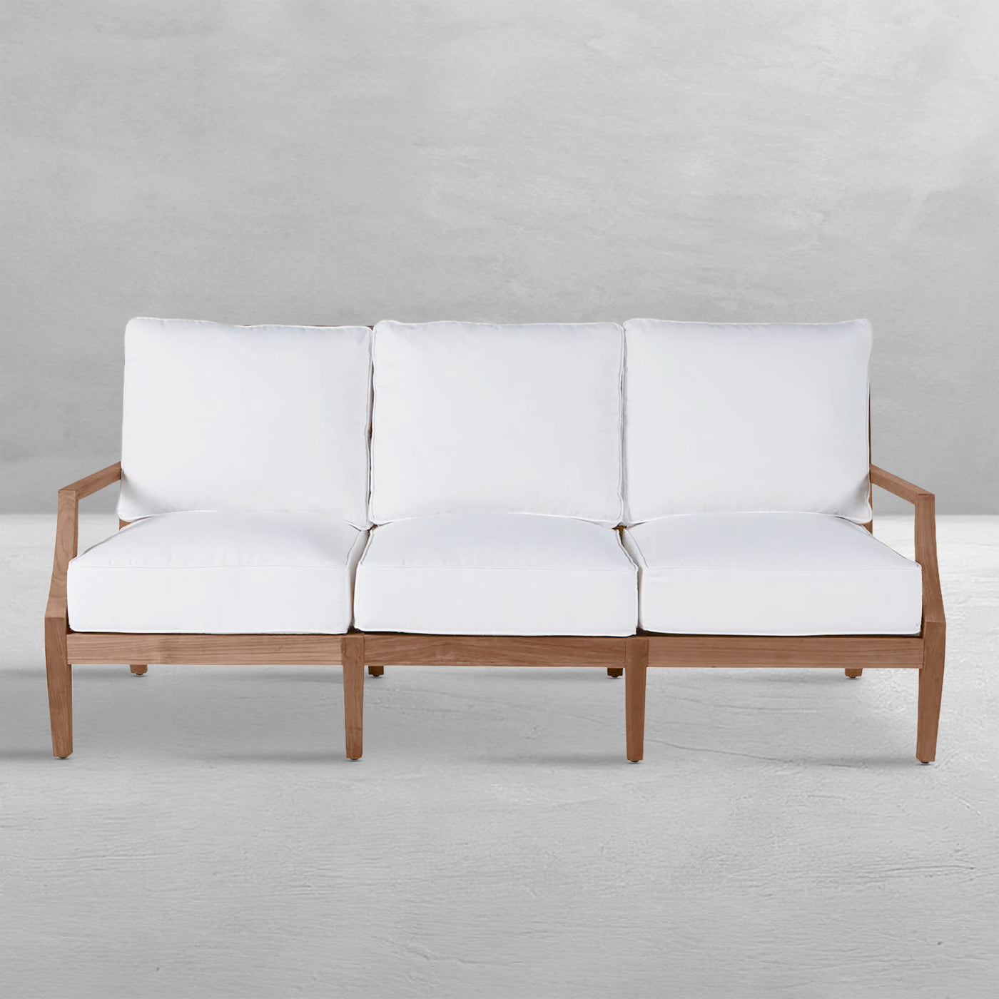 The Haley Teak Sofa brings timeless elegance to your outdoor living space with its trellis-inspired lattice back design and the unmatched durability of premium teak. This sofa is a masterpiece of design, featuring the natural resilience and water resistance of teak from Indonesian plantations. The graceful X-back silhouette, accentuated with meticulous notches, blends harmoniously with any teak collection, while the choice of natural teak or the oyster finish adds a layer of classic sophistication. Embrace the lasting luxury of this Grade A teak furniture, knowing that it hails from FSC-certified sources committed to ecological stewardship. Add plush Dream Cushions for ultimate comfort.