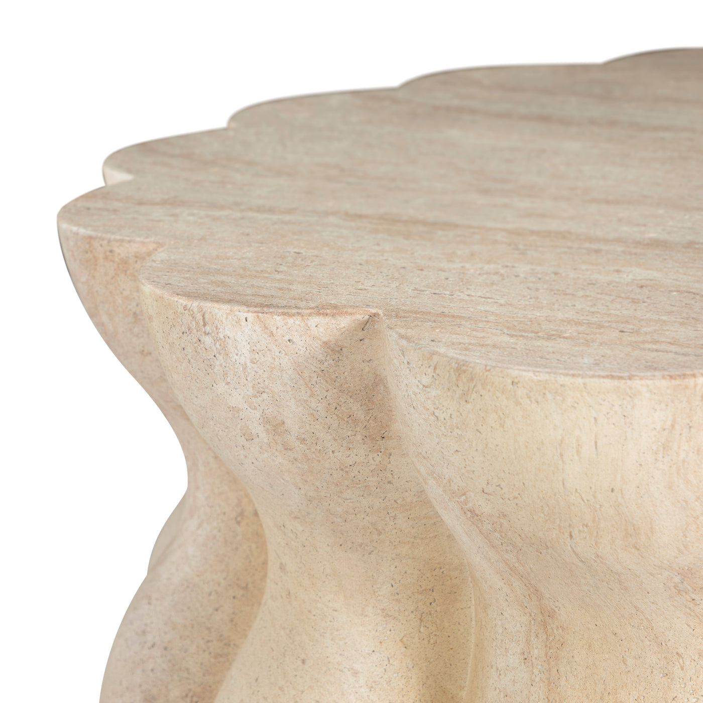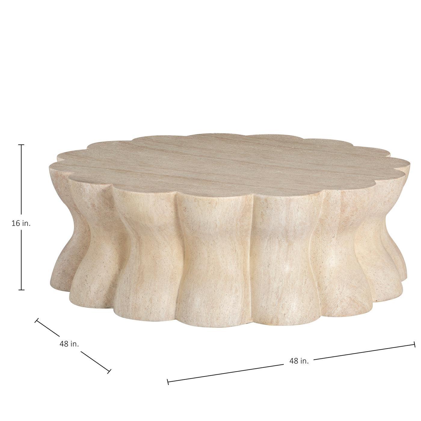 The Delphi Coffee Table embodies sculptural sophistication with its graceful hourglass silhouette and soft scalloped edges. Crafted from our signature cast stone—a blend of natural crushed stone and premium binder—this piece offers timeless beauty and enduring strength for both indoor and outdoor spaces. Finished in our new Roman Travertine, a hydrodipped finish that captures the realistic texture and tone of natural stone, the table exudes quiet luxury. Elegant yet substantial, the Delphi Coffee Table anchors any seating area with organic charm and modern refinement.