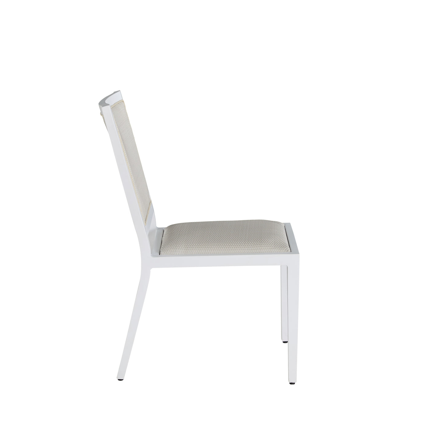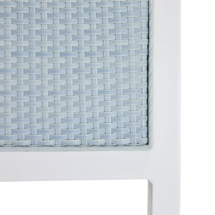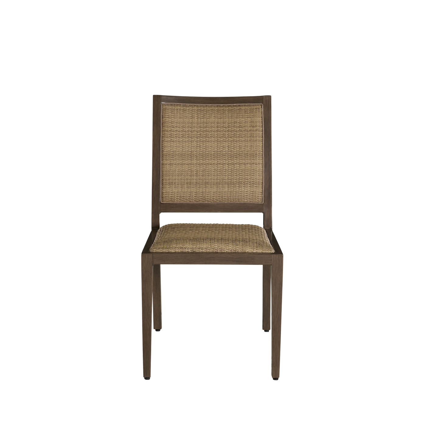 The Grand Bermuda Side Chair features an exceptionally weather-resistant woven seat and back crafted from N-Dura™ resin wicker for long-lasting beauty and durability. The hand-welded wrought aluminum frame highlights its straight modern lines. Featuring a versatile design, this dining chair pairs with many of our different outdoor dining tables, as well as other collections. The seating is made with reticulated foam, making this interior cushioned seat comfortable for the alfresco meals.