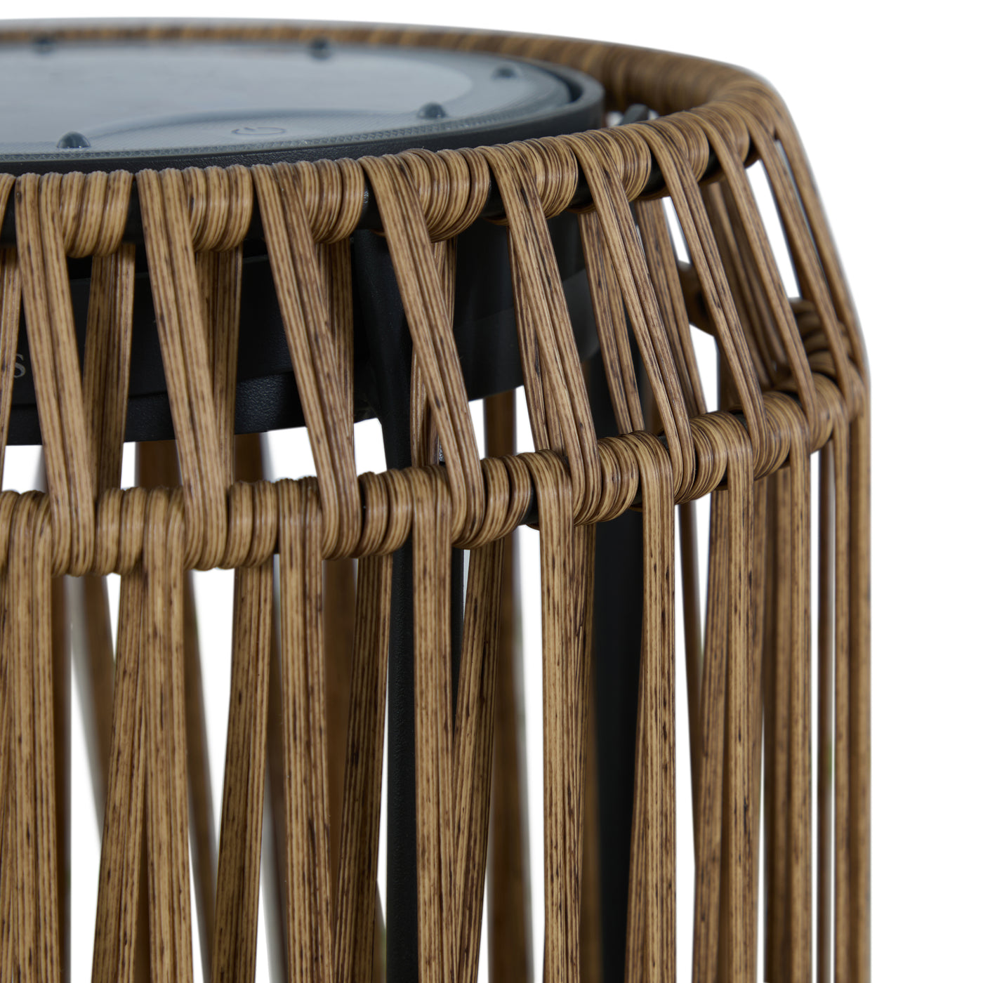 Compact yet full of character, the Pointe Small Lantern elevates outdoor spaces with its woven texture and clean, organic form. Made entirely of weather-resistant N-Dura™ resin wicker, it is both lightweight and durable. A removable LED module delivers soft, customizable lighting—no flames, glass, or candles required. With solar and main power charging, plus touch and remote operation, it offers modern convenience in a timeless silhouette. Ideal for accenting dining tables, ledges, steps, or layering in tiered groupings with other sizes for a dynamic glow.