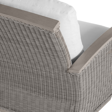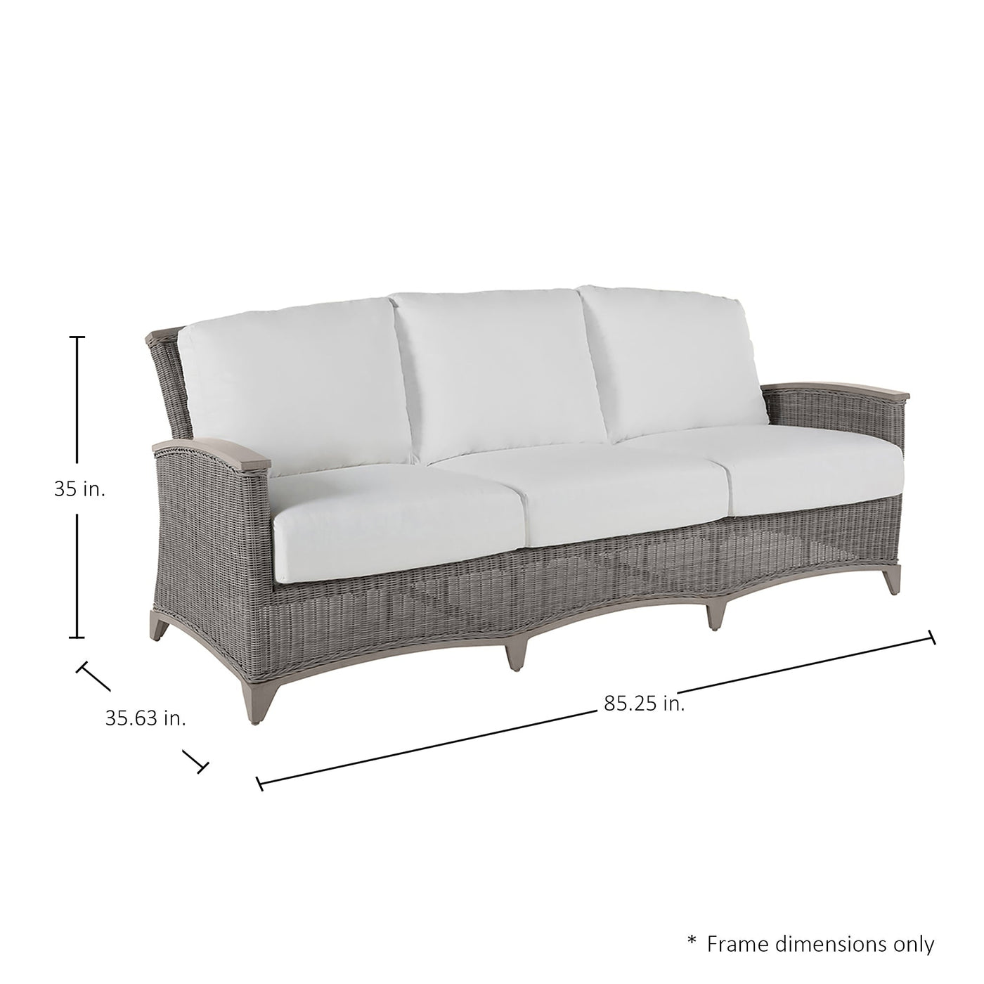 The Astoria Woven Sofa combines luxurious comfort with all-weather durability. UV-resistant N-Dura™ resin wicker, handwoven over a powder-coated aluminum frame, ensures longevity. Plush cushions complement the sofa’s spacious seating, making it perfect for entertaining or lounging outdoors. Its resilient materials promise easy upkeep and lasting appeal. This item is available through our Quick Ship program in the specific frame finish, fabric option, cushion type, and fill shown. Quick Ship pieces are ready to ship within 72 hours, ensuring you receive your selection faster without compromising on quality.