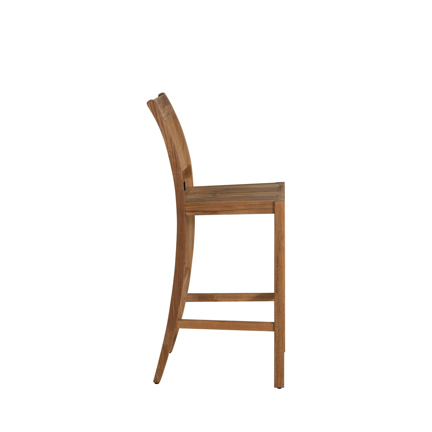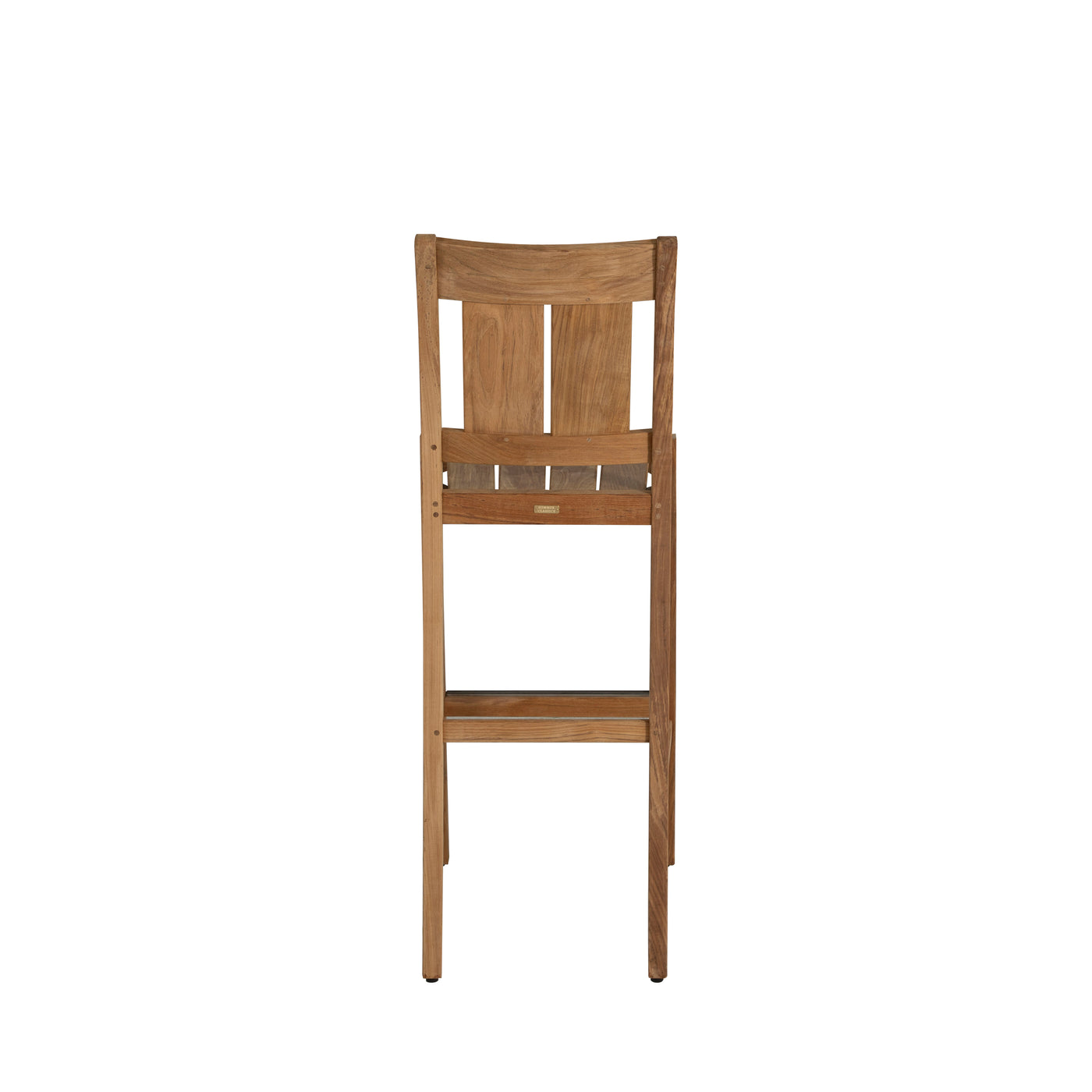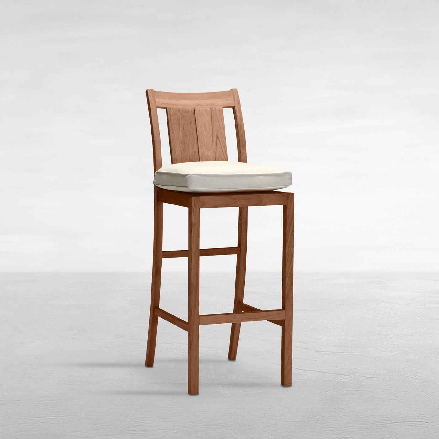 Our Croquet Teak 30" Bar Stool embodies the ideal blend of sophistication and comfort for your outdoor entertaining spaces. Crafted from sustainably harvested teak in either a natural warm teak or oyster finish that emulates the silvery hue of aged teak, this stool adds a touch of timeless elegance. With or without the cushion, this bar stool offers versatile seating options. Place it alongside an outdoor bar or a high dining table to create an inviting spot for guests to gather, enjoy drinks, or dine al fresco. Its sturdy construction and weather-resistant materials ensure that it will be a mainstay of your outdoor living for seasons to come. This item is designed to be enjoyed either with or without a cushion. Designate your choice in the below "Select a Cushion" dropdown.