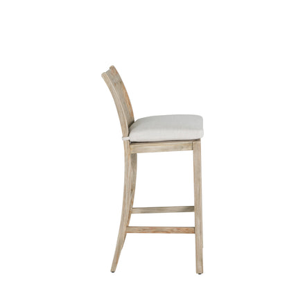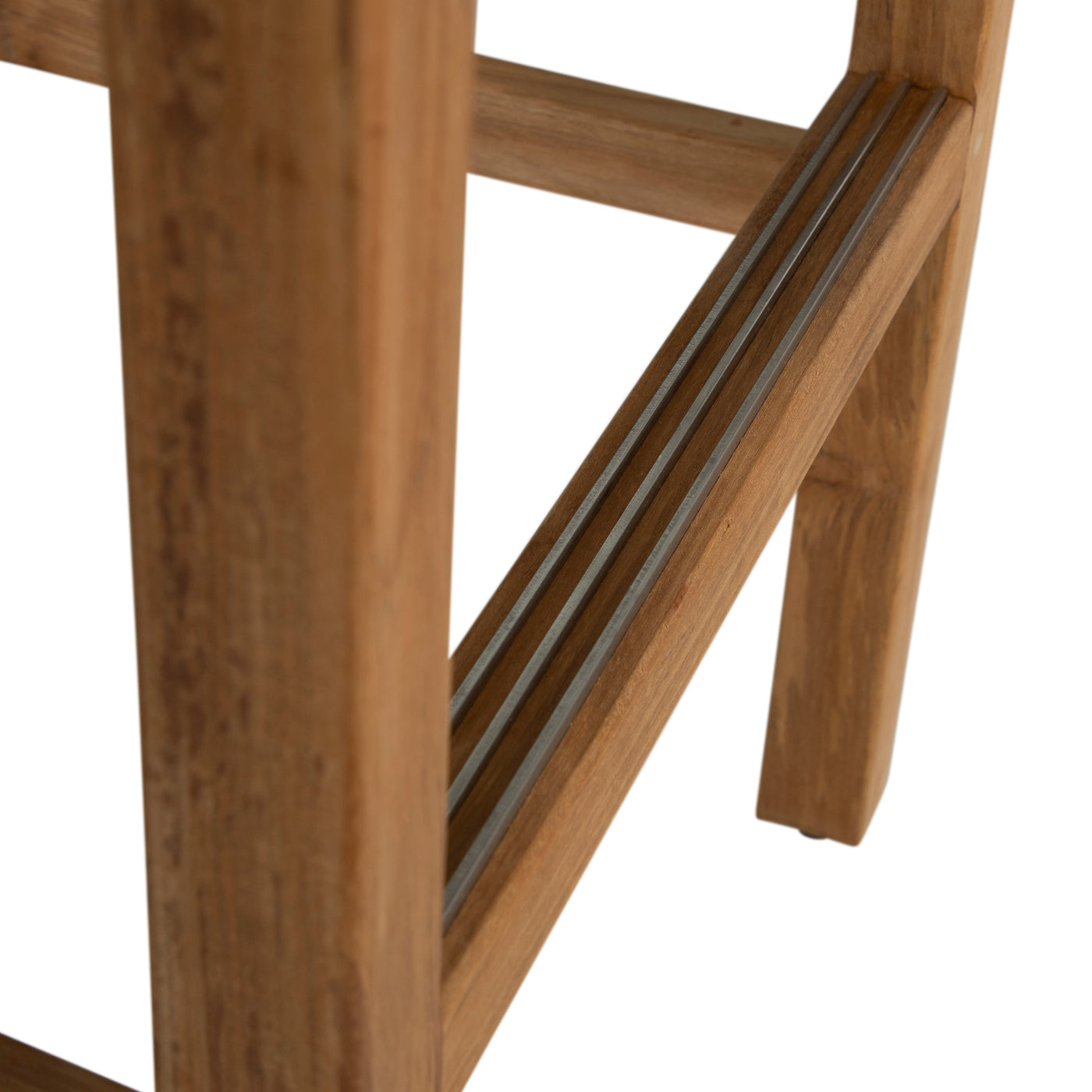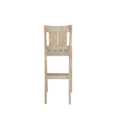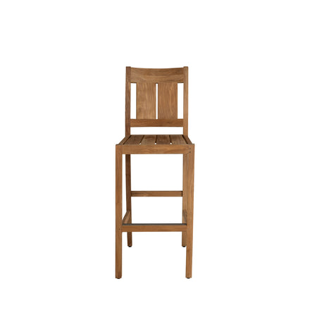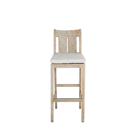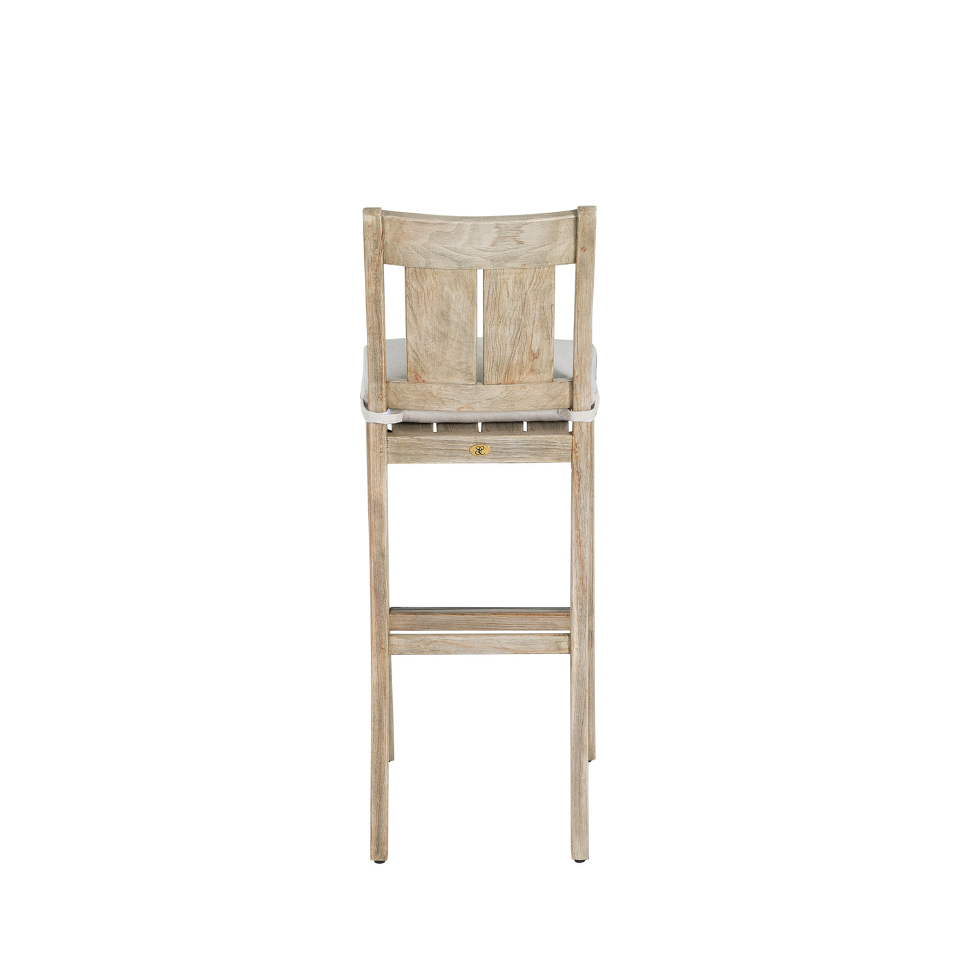 Our Croquet Teak 30" Bar Stool embodies the ideal blend of sophistication and comfort for your outdoor entertaining spaces. Crafted from sustainably harvested teak in either a natural warm teak or oyster finish that emulates the silvery hue of aged teak, this stool adds a touch of timeless elegance. With or without the cushion, this bar stool offers versatile seating options. Place it alongside an outdoor bar or a high dining table to create an inviting spot for guests to gather, enjoy drinks, or dine al fresco. Its sturdy construction and weather-resistant materials ensure that it will be a mainstay of your outdoor living for seasons to come. This item is designed to be enjoyed either with or without a cushion. Designate your choice in the below "Select a Cushion" dropdown.