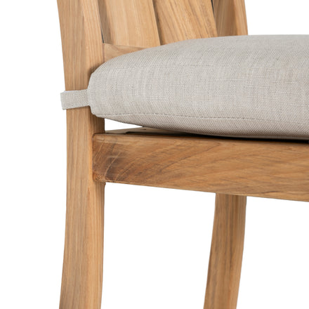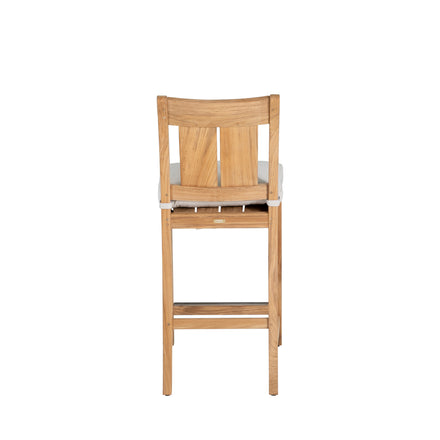 Our Croquet Teak 24" Counter Stool embodies the ideal blend of sophistication and comfort for your outdoor entertaining spaces. Crafted from sustainably harvested teak in either a natural warm teak or oyster finish that emulates the silvery hue of aged teak, this stool adds a touch of timeless elegance. With or without the cushion, this bar stool offers versatile seating options. Place it alongside an outdoor counter or a high dining table to create an inviting spot for guests to gather, enjoy drinks, or dine al fresco. Its sturdy construction and weather-resistant materials ensure that it will be a mainstay of your outdoor living for seasons to come. This item is designed to be enjoyed either with or without a cushion. Designate your choice in the below "Select a Cushion" dropdown.