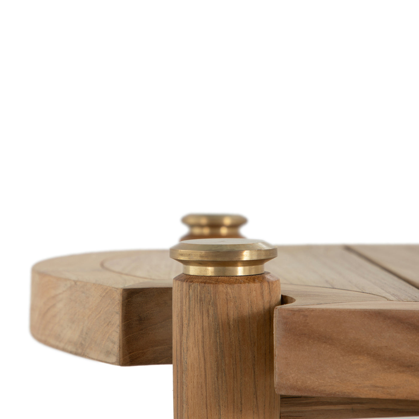 The Pacifica Rectangular Coffee Table enriches outdoor spaces by exemplifying the unmatched elegance and durability of some of the world's finest teak. The unfinished brass accents on the leg extensions add a touch of sophistication, designed to beautifully patina over time, enhancing the tables' aesthetic appeal with a lived-in, vintage charm. The tabletops are thoughtfully slated, promoting efficient water drainage and making them perfectly suited for outdoor environments. Please note, that due to its high-quality center cut, and natural oils, teak will age gracefully without the help of cleaners and protectors.