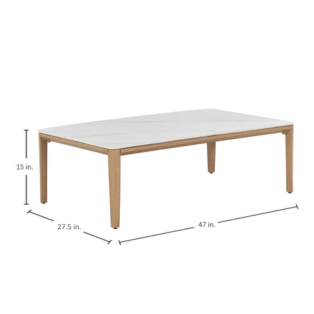 Introducing the Palma Nesting Coffee Table, an innovative and versatile addition to the exceptionally durable Palma Collection. This nesting set is crafted from high-quality materials, featuring aluminum legs in a natural finish and stunning sintered stone tops that mimic marble, each piece showcasing unique veining. The set includes two rectangular tables: one longer, narrower, and higher, designed to nest seamlessly above the coffee table. Perfect for hosting events, this dual-functionality offers a dynamic setup that adapts to your needs. The sintered stone tops are impressively durable, resistant to hot and cold items, and impervious to water rings and oil-based spills. With a flat, matte finish that requires no maintenance, the Palma Nesting Coffee Table combines elegance and practicality, enhancing your outdoor living space with style and flexibility.