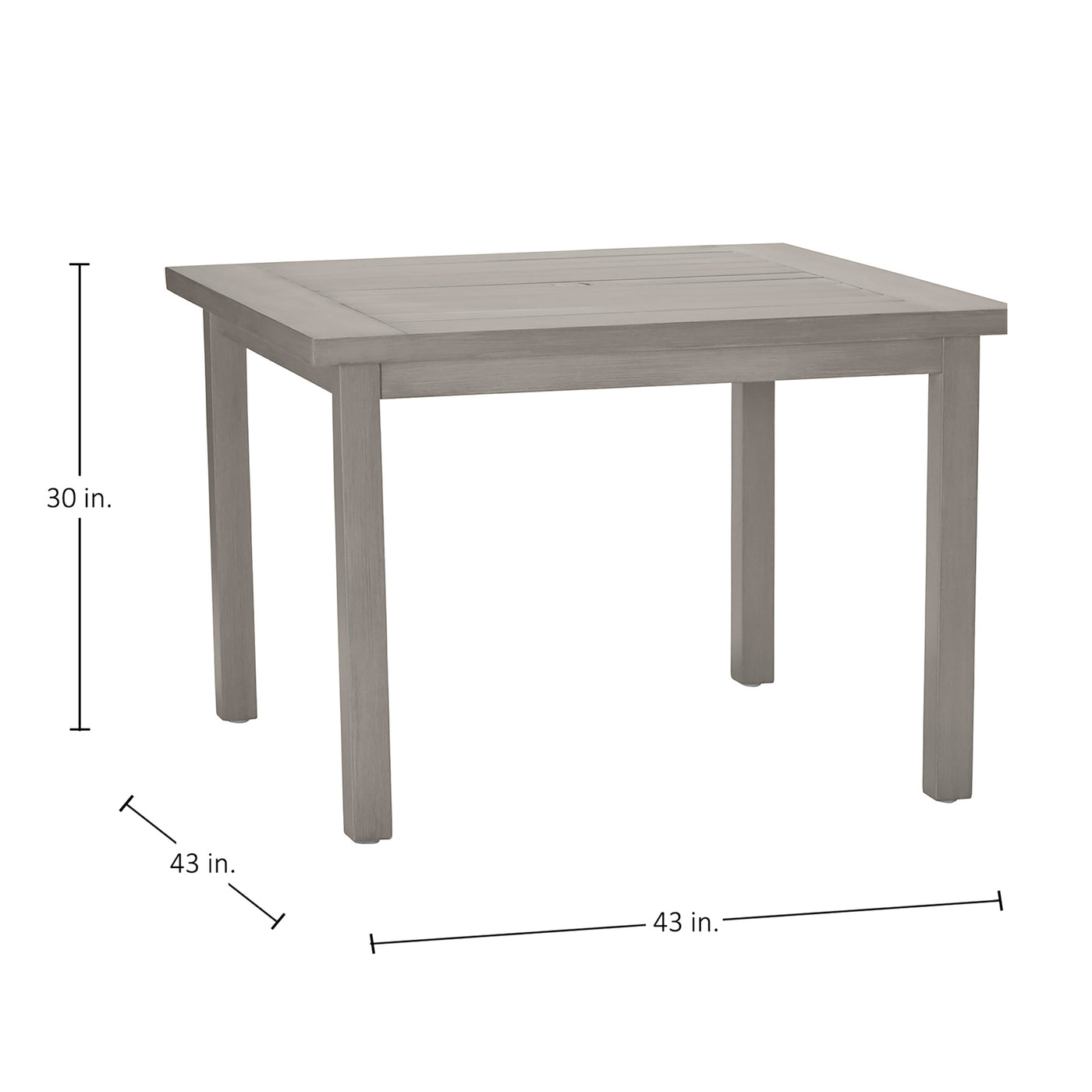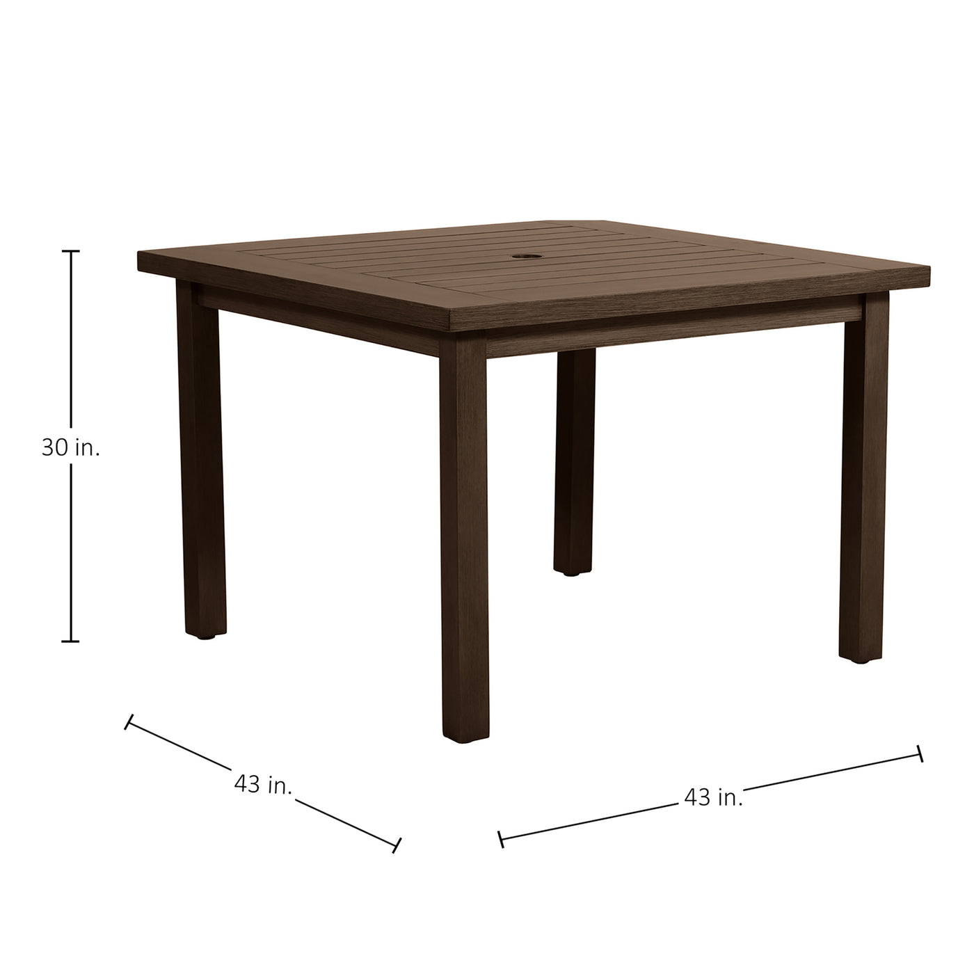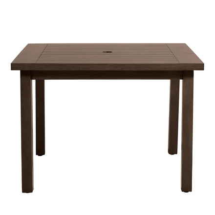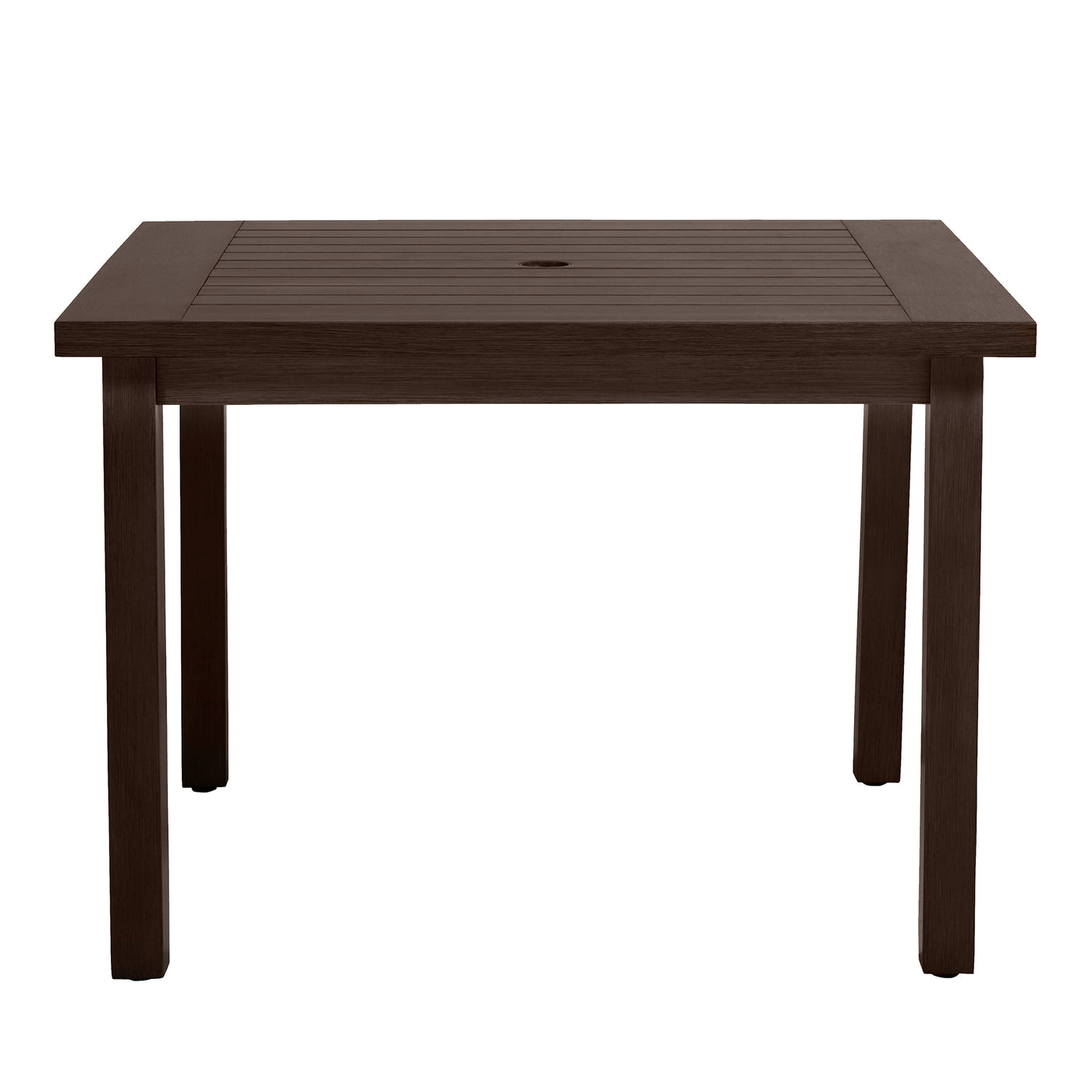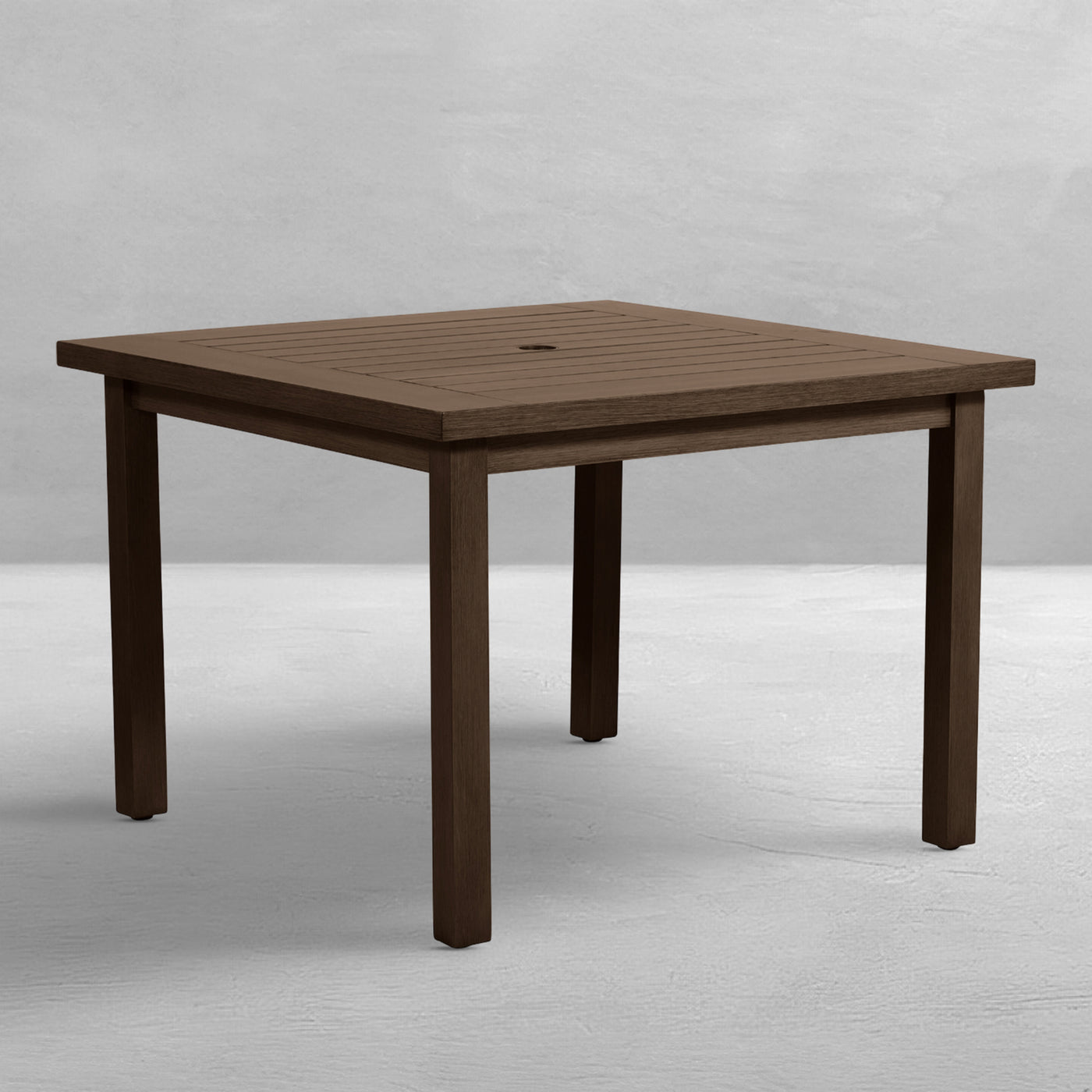 The Club Aluminum Square Dining Table features a classic style that mixes with an array of outdoor looks. Handcrafted from sturdy wrought aluminum with a UV-resistant powder-coated finish, this versatile table is built to withstand the elements. Wrought aluminum construction and an exceptionally UV-resistant powder-coated finish guarantee years of beauty and enjoyment.