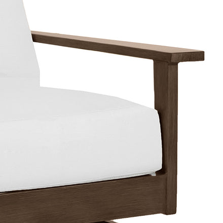 The Kennebunkport Spring Lounge is a fusion of luxury and comfort designed for the discerning eye. The spring mechanism adds a gentle rocking motion, creating an inviting place for relaxation or conversation. Its wrought aluminum construction ensures durability, while the architectural-grade powder-coated finish offers a lasting hue resistant to the elements. This lounge is not just a seat but an experience, offering a touch of serenity and movement to your outdoor haven.