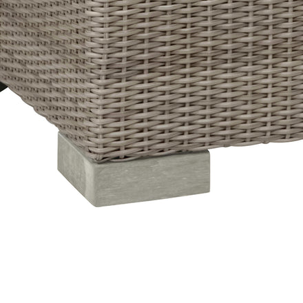 - Crafted with a durable aluminum frame wrapped in handwoven N-Dura resin wicker for long-lasting outdoor performance
