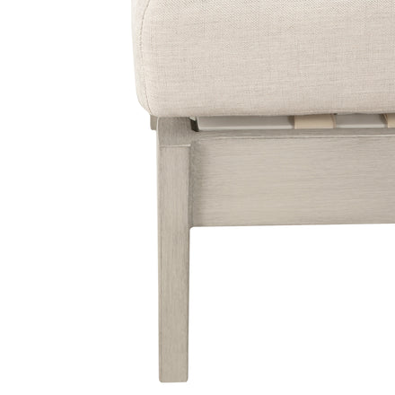 The Kennebunkport Ottoman offers versatility, durability, and classic outdoor styling. This versatile piece can be used as a footrest, extra seating, or as a side table. A durable aluminum frame and weather-resistant upholstered cushion give long-lasting wear.