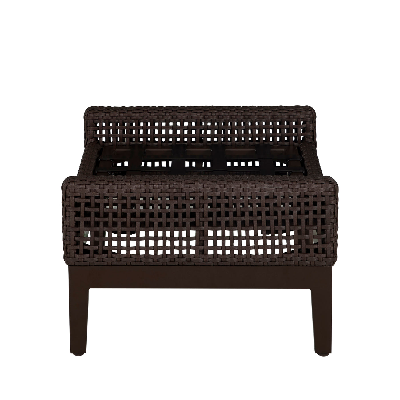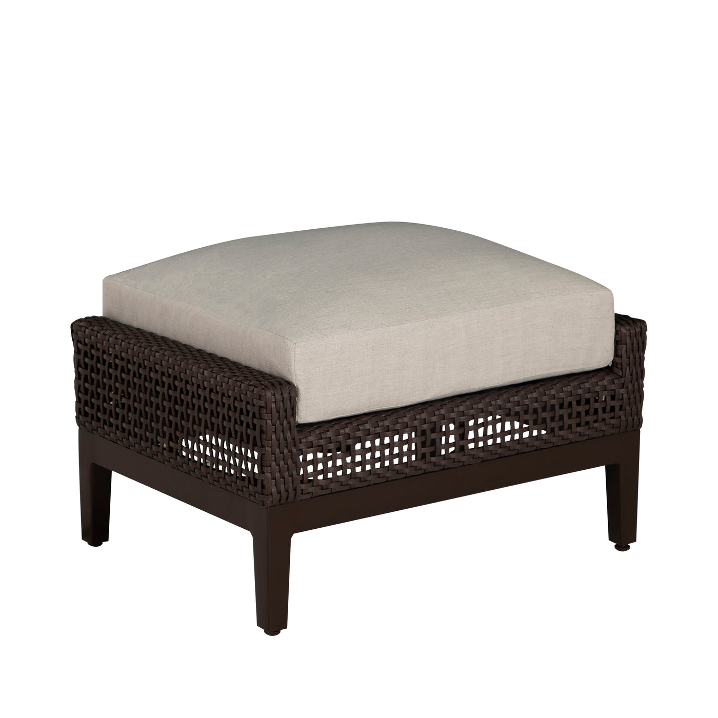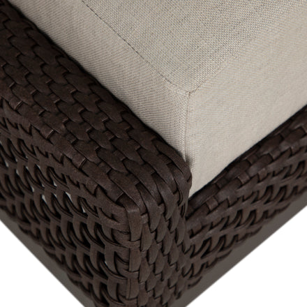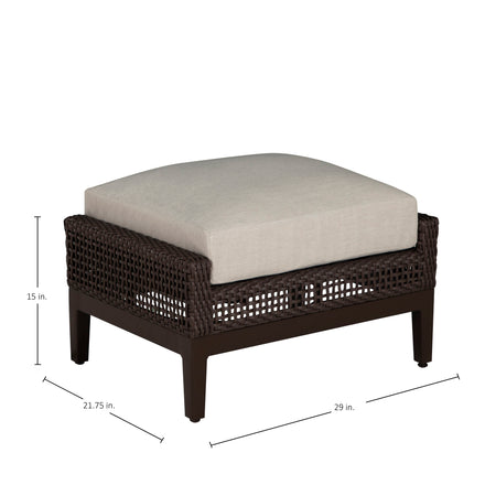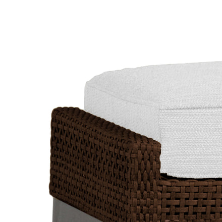 The Peninsula Woven Ottoman presents a style that's both contemporary and rooted in traditional design. It features a substantial cushion atop a robust, handwoven, open-weave base, combining comfort with an airy, light aesthetic. This ottoman offers versatility as both a footrest and a casual seating option or even as a side table with a tray on top. Its design brings a relaxed sophistication to any outdoor setting.
