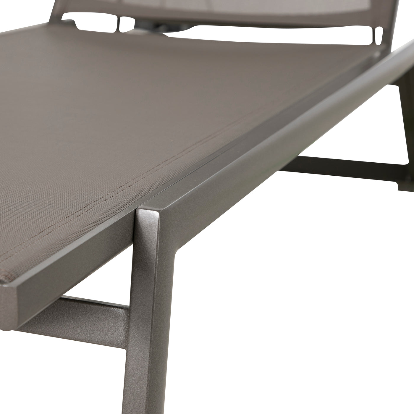 The Salem Sling Chaise merges modern design with practicality, ideal for the poolside. Constructed with durable outdoor sling fabric and a weather-resistant wrought aluminum frame, it withstands the elements with ease. Designed with clean lines for a sleek look, this chaise is lightweight for easy rearrangement, ensuring a perfect spot by the water for relaxation and sun enjoyment.