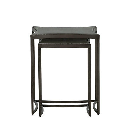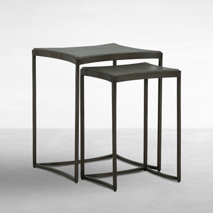 The elegantly designed Herrin Nesting tables add a distinctive contemporary element to outdoor spaces. The tables are durable and minimalistic, with soft cures on the table surface.