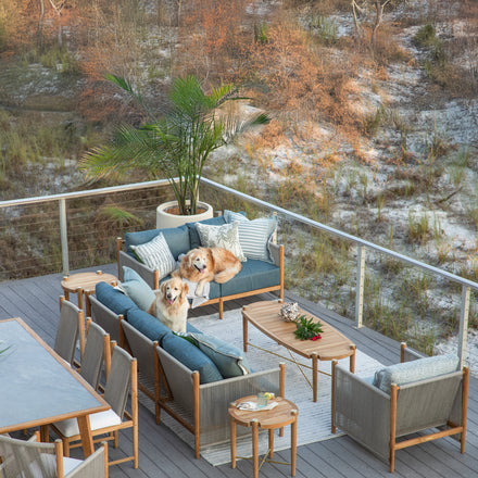 - Sustainably sourced teak with natural oils ensures graceful aging without the need for chemical cleaners or protectors