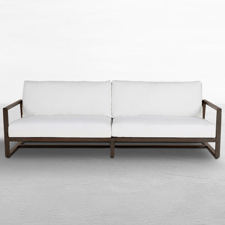 The Avondale Aluminum Sofa is the pinnacle of sleek design and comfort. Its clean lines and mid-century silhouette are crafted from high-grade wrought aluminum, ensuring durability and longevity. The sofa is finished with a resilient powder-coating, making it ideal for any outdoor setting. With plush, custom cushions that invite hours of relaxation, this sofa is a testament to sophisticated outdoor living, designed to create an inviting atmosphere where you can unwind in style.