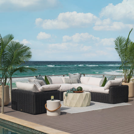 The Montecito Sofa features oversized proportions for the ultimate in luxurious seating. Inspired by the charm of handwoven basketry, the large wicker weave offers a relaxed look and feel to the low, linear profile of this outdoor sofa. Made for years of enjoyment and beauty with highly weather- and UV-resistant N-Duraâ„¢ resin wicker for a worry-free experience with the look of natural materials.