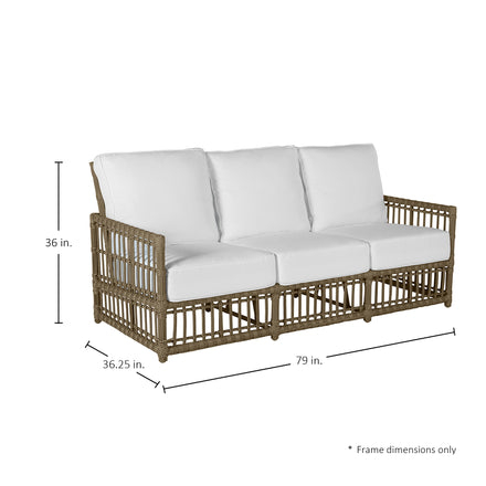 Embrace the outdoor coastal lifestyle with our Newport Woven Sofa, a piece that beautifully combines durability with a classic aesthetic. Constructed from high-grade, UV-resistant N-Dura™ resin wicker, this sofa is designed to withstand the elements, maintaining its elegant appearance over time. The robust material resists fading and wear, making it ideal for both sunny afternoons and evening relaxation. Position it on your patio, deck, or in a garden alcove for a cozy seating area perfect for entertaining guests or enjoying quiet moments alone. Its ample seating and plush cushions offer a comfortable spot for long conversations, reading, or simply soaking in the tranquility of your outdoor haven. This sofa is more than just seating—it's a durable, stylish statement that enhances any outdoor patio.