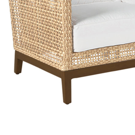 The Peninsula Woven Sofa encapsulates a refined yet relaxed style, ideal for enhancing the comfort and elegance of your outdoor patio. Its design takes inspiration from classic wicker craftsmanship but is made with durable, UV-resistant N-Duraâ„¢ resin wicker that endures against the elements, offering both resilience and a chic aesthetic. The open weave contributes to its airy and inviting look, while the plush cushions ensure deep-seated comfort for you and your guests. This sofa is perfect for leisurely lounging, social gatherings, or as a stylish focal point in any outdoor setting, seamlessly blending functionality, durability and timeless appeal.
