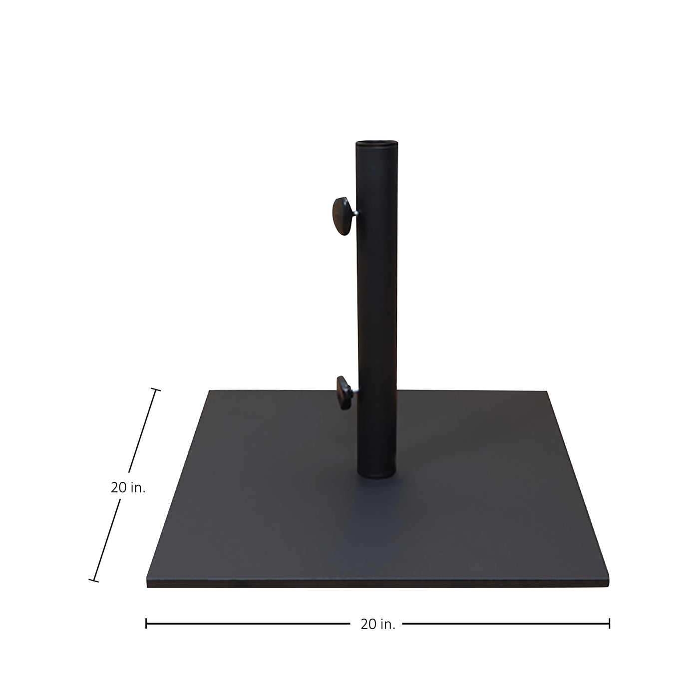 Introducing the sleek Modern 20" Umbrella Base, meticulously engineered with steel for a streamlined look and durable support. Its minimalist design and solid construction make it an ideal choice for anchoring our 9' umbrellas independently or pairing with an outdoor dining table to secure a 9' or 11' umbrella. This base offers a seamless blend of function and contemporary style for your outdoor space.