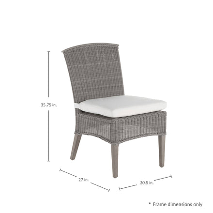 The Astoria Side Chair melds timeless design with enduring materials. UV-resistant handwoven N-Dura™ resin wicker and a sturdy aluminum frame offer weather-resistant durability. Comfortable seating area and a cushion enhance the dining experience, making this chair a durable yet elegant choice for any outdoor setting. This item is designed to be enjoyed either with or without a cushion. Please designate your choice in the below "Select a Cushion" dropdown. This item is available through our Quick Ship program in the specific frame finish, fabric option, cushion type, and fill shown. Quick Ship pieces are ready to ship within 72 hours, ensuring you receive your selection faster without compromising on quality.