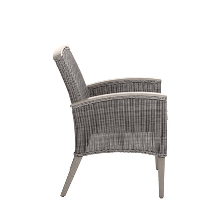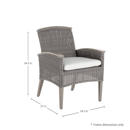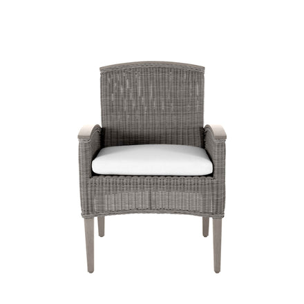 The Astoria Arm Chair features ultra-UV resistant N-Dura™ resin wicker handwoven over a durable aluminum frame. Its powder-coated finish enhances weather resistance and aesthetic appeal. The design offers comfort with high back support and armrests, complemented by a plush cushion. Perfect for outdoor settings, it combines timeless elegance with modern durability. This item is designed to be enjoyed either with or without a cushion. Please designate your choice in the below "Select a Cushion" dropdown. This item is available through our Quick Ship program in the specific frame finish, fabric option, cushion type, and fill shown. Quick Ship pieces are ready to ship within 72 hours, ensuring you receive your selection faster without compromising on quality.