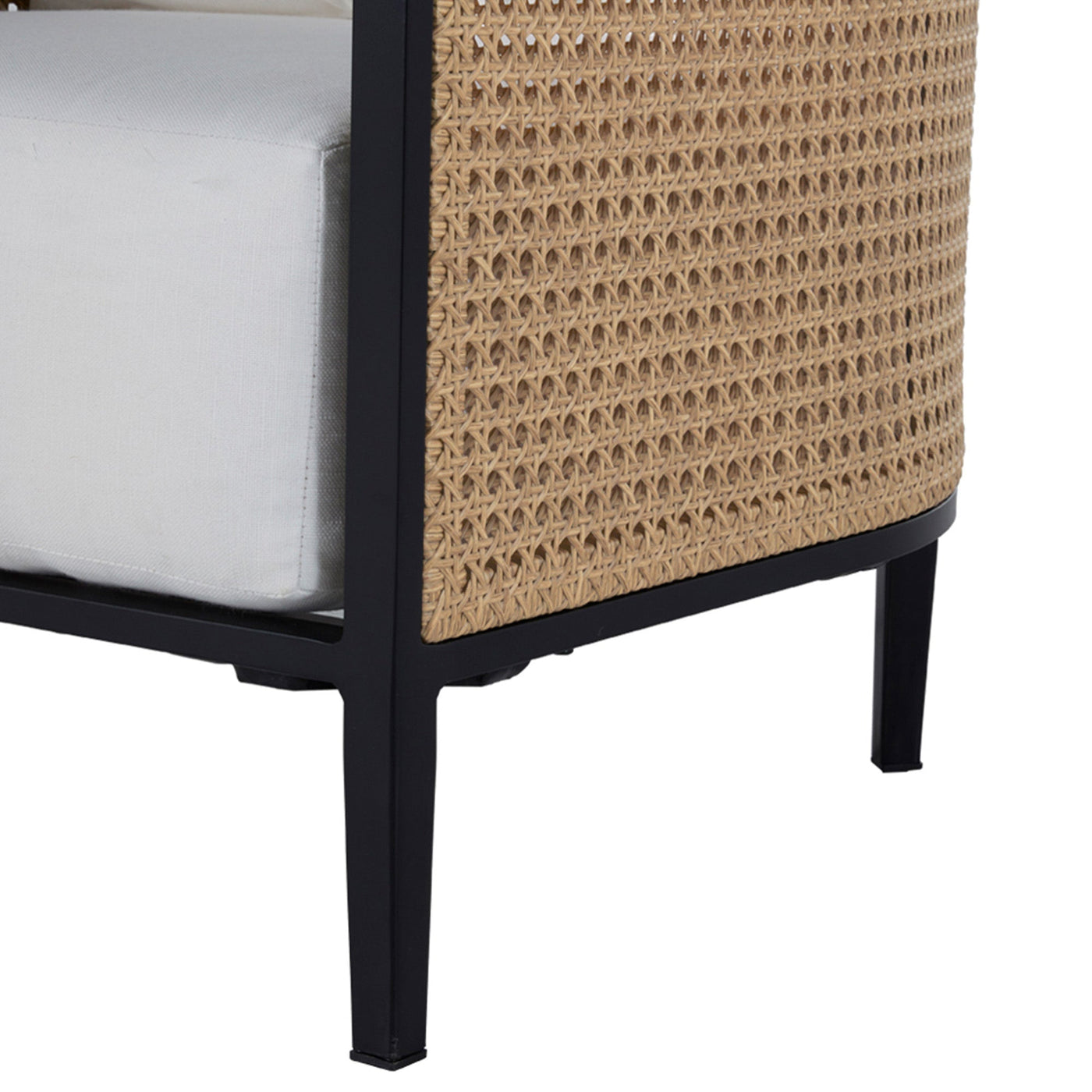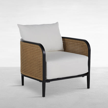 Inspired by classic open-cane weaving, the Havana Lounge Chair is a standout with its comfortably curved back and sides crafted from all-weather, UV-resistant N-Dura™ resin wicker thats guaranteed not to experience any significant color change for five years. The aluminum frame has a long-lasting powder-coated finish and is strengthened at all stress points for ultimate durability. The cushions, specifically designed for outdoors with fabrics that stand up to the elements, are weather and fade resistant for years of good looks and enjoyment. Chalk/Natural Resin finish. This item is available through our Quick Ship program in the specific frame finish, fabric option, cushion type, and fill shown. Quick Ship pieces are ready to ship within 72 hours, ensuring you receive your selection faster without compromising on quality.