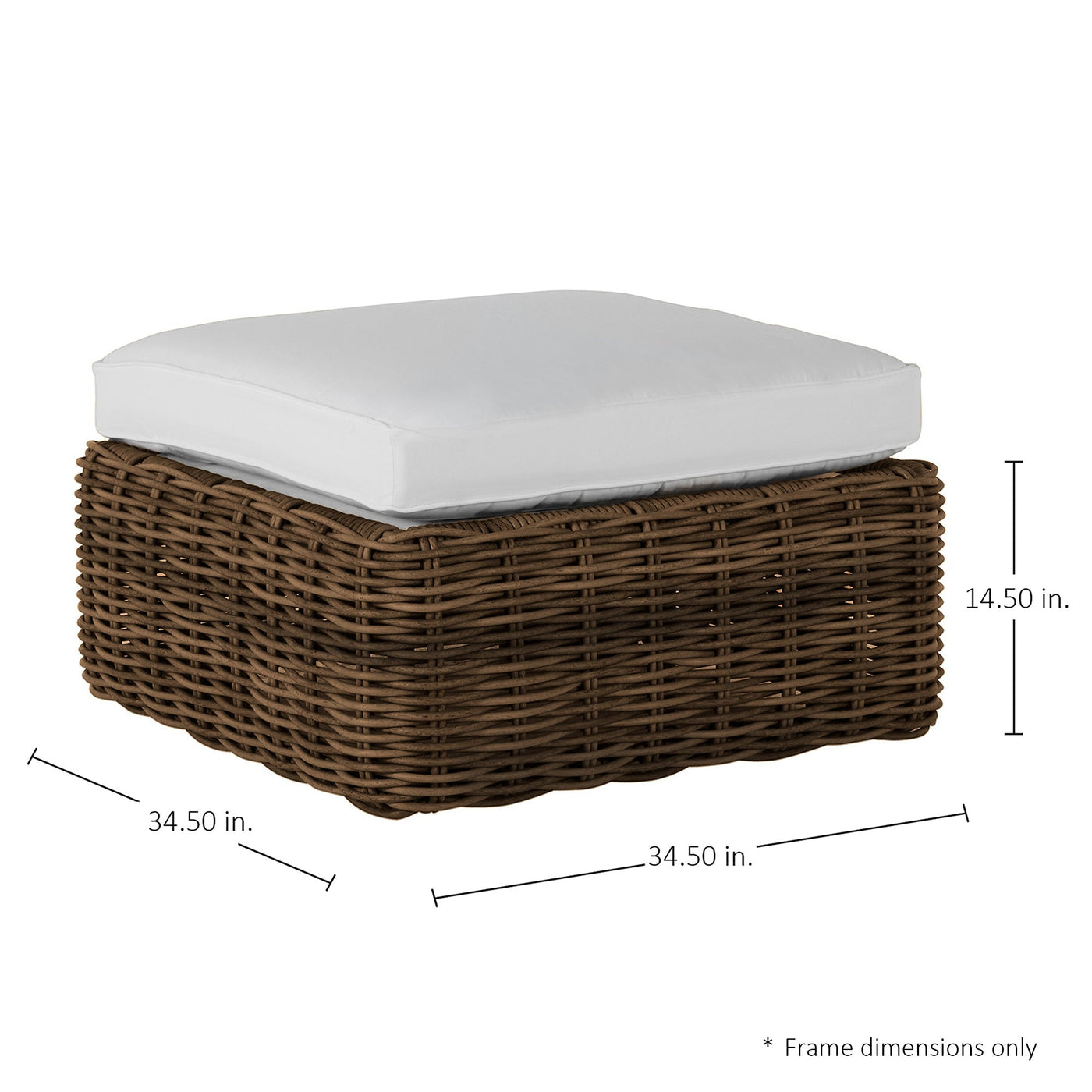 The Montecito Ottoman features oversized proportions for ultimate in luxury. Inspired by the charm of handwoven basketry, the large wicker weave offers a relaxed look and feel to this ottoman's low, linear profile. Made for years of enjoyment and beauty with highly weather- and UV-resistant N-Dura™ resin wicker for a worry-free experience with the look of natural materials. This item is available through our Quick Ship program in the specific frame finish, fabric option, cushion type, and fill shown. Quick Ship pieces are ready to ship within 72 hours, ensuring you receive your selection faster without compromising on quality.