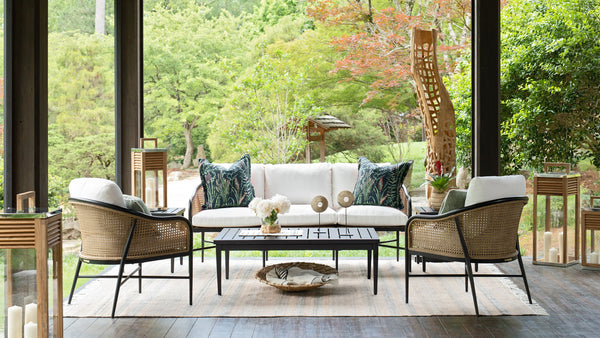 The Havana Collection blends classic open cane weaving with durable N-Dura™ resin wicker and polished aluminum frames, combining historic charm with modern, mid-century-inspired design for timeless outdoor style.