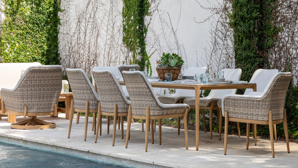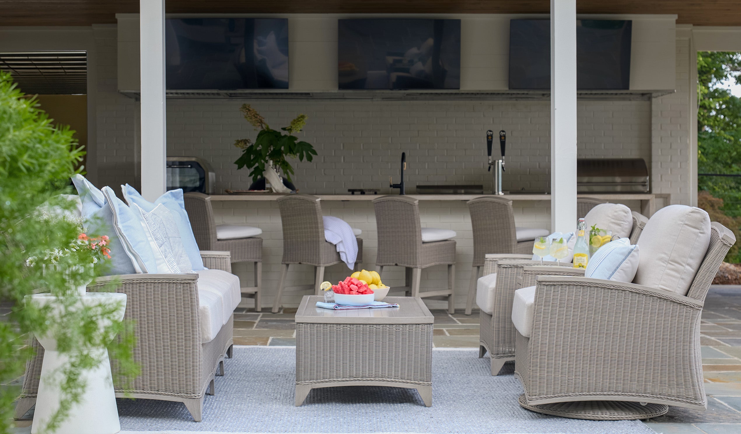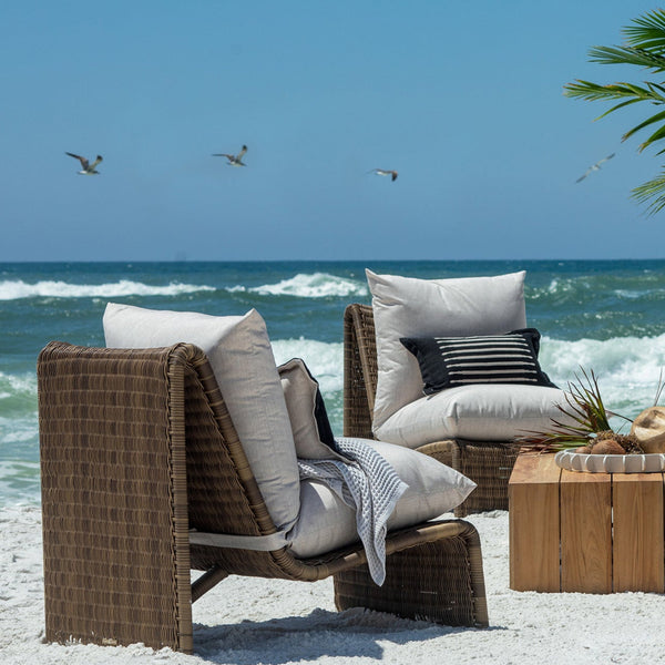 The Playa Collection combines contemporary lines with natural elegance, featuring hand-woven N-Dura™ resin wicker and sustainably sourced teak for a classic, beach-inspired outdoor retreat.