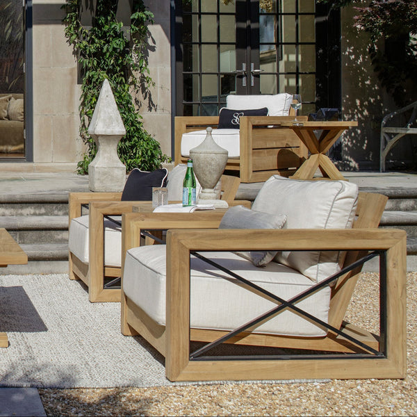 The Malta Collection blends Mediterranean-inspired teak craftsmanship with modern aluminum x-pattern design and ultra-deep Dream™ cushions, offering a luxurious, eco-friendly mix of classic charm and contemporary elegance.