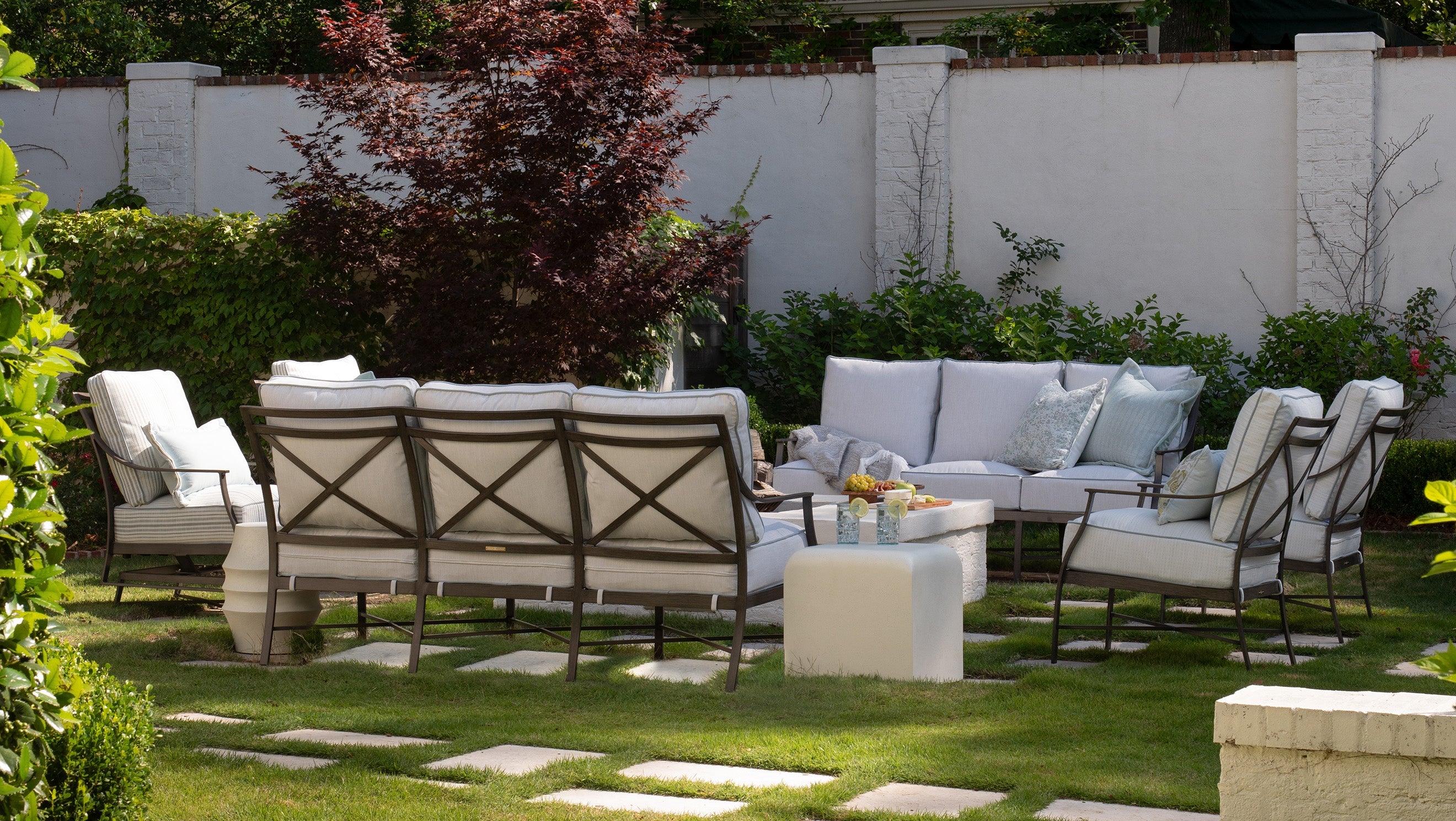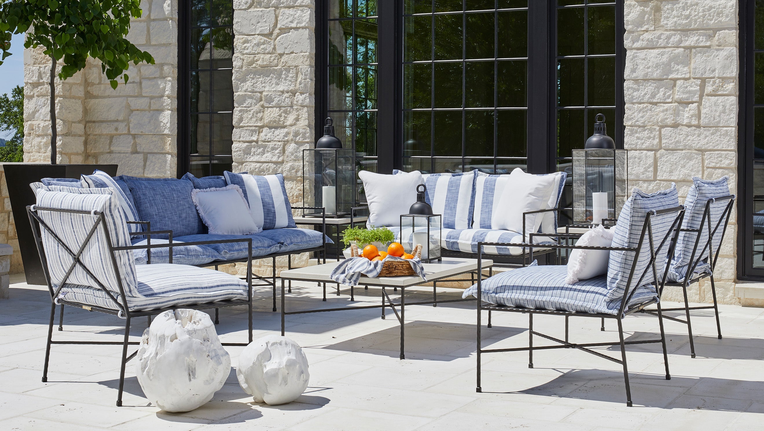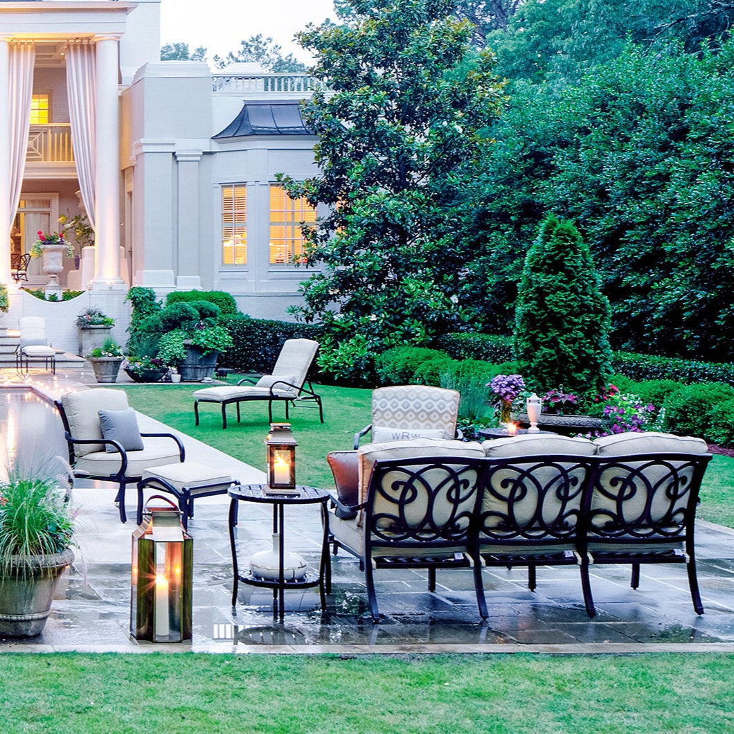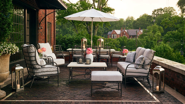 The Italia Collection channels timeless wrought iron furniture with refined hammered iron details, slender frames, and a classic X-back design, paired perfectly with soft flanged cushions for lasting comfort.