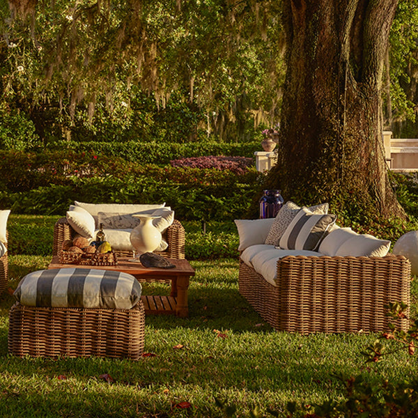 The Newport Collection blends 1950s coastal style with classic wicker craftsmanship, featuring open-weave N-Dura™ resin for a light, airy look and UV-resistant durability, combined with a structured frame and plush cushions for modern comfort.